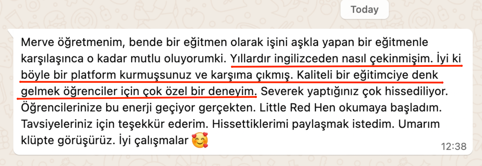 Her gün öğrencilerimden bu platformu kurduğuma dair teşekkür mesajları alıyorum. Sen de daha fazla zaman kaybetmeden aramıza katıl. Burda sana çok iyi bakacağız.